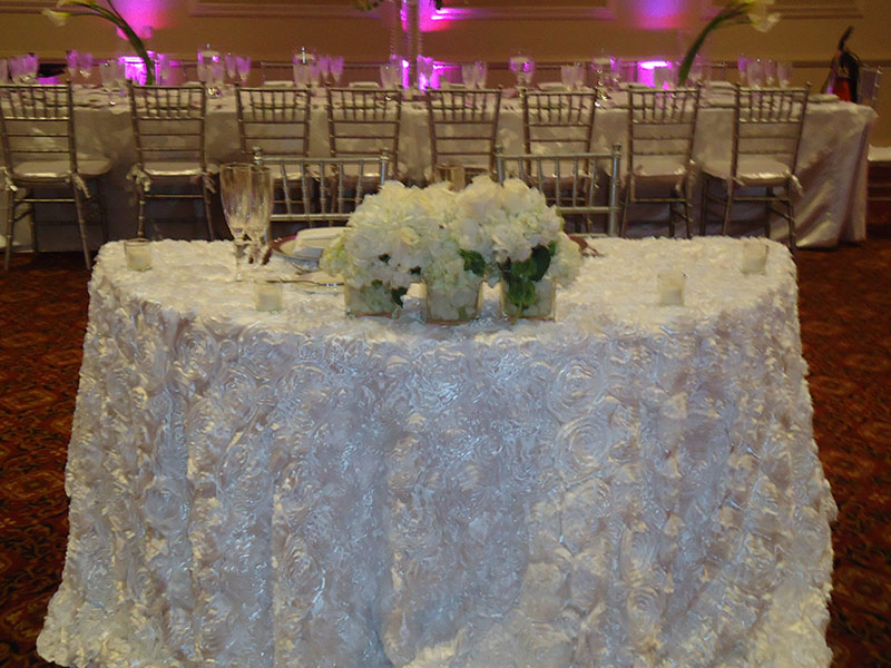 Whatever your preference of fabric for your table cloths or chair covers we can provide it for you! Spandex, sheer, satin, lace, beaded and more. When we make your tablescape samples it always included your selection of linen to create a customize design.